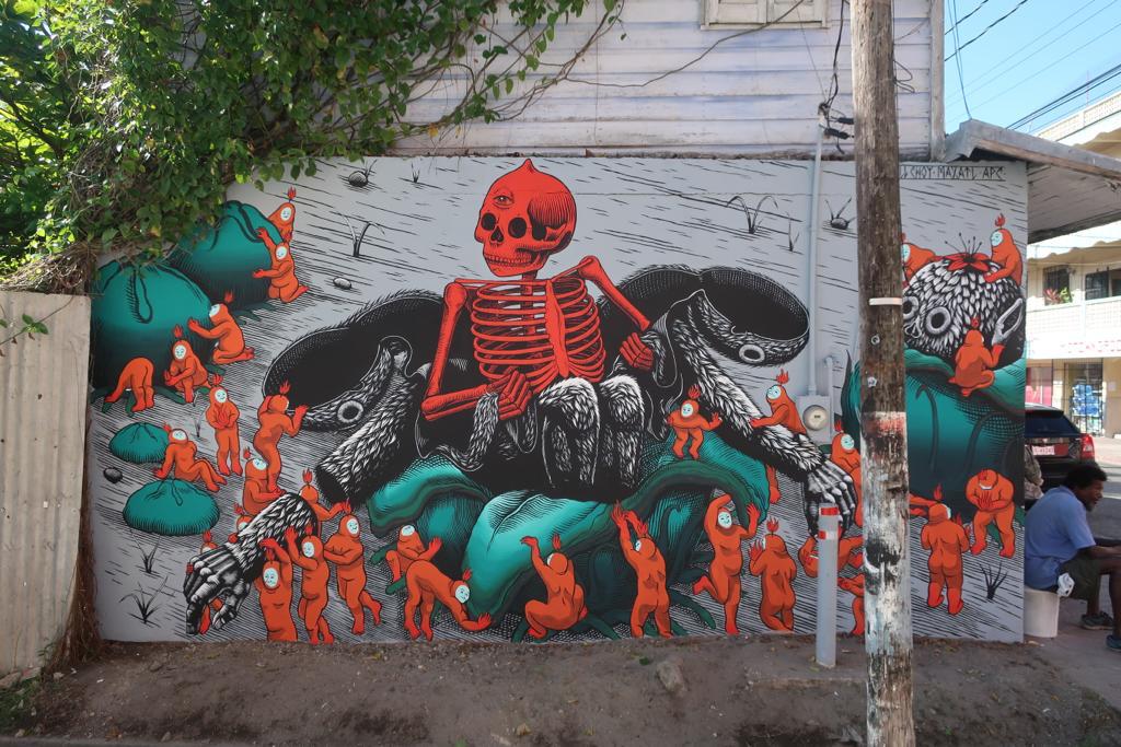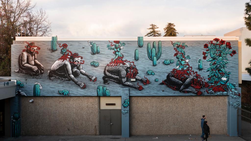 L'obra de Mazatl, transforma i deriva un imaginari animal i mitológic cap a reflexions polítiques entorn de la justícia social, aspectes ambientalistas i la construcció d'identitats col·lectives.